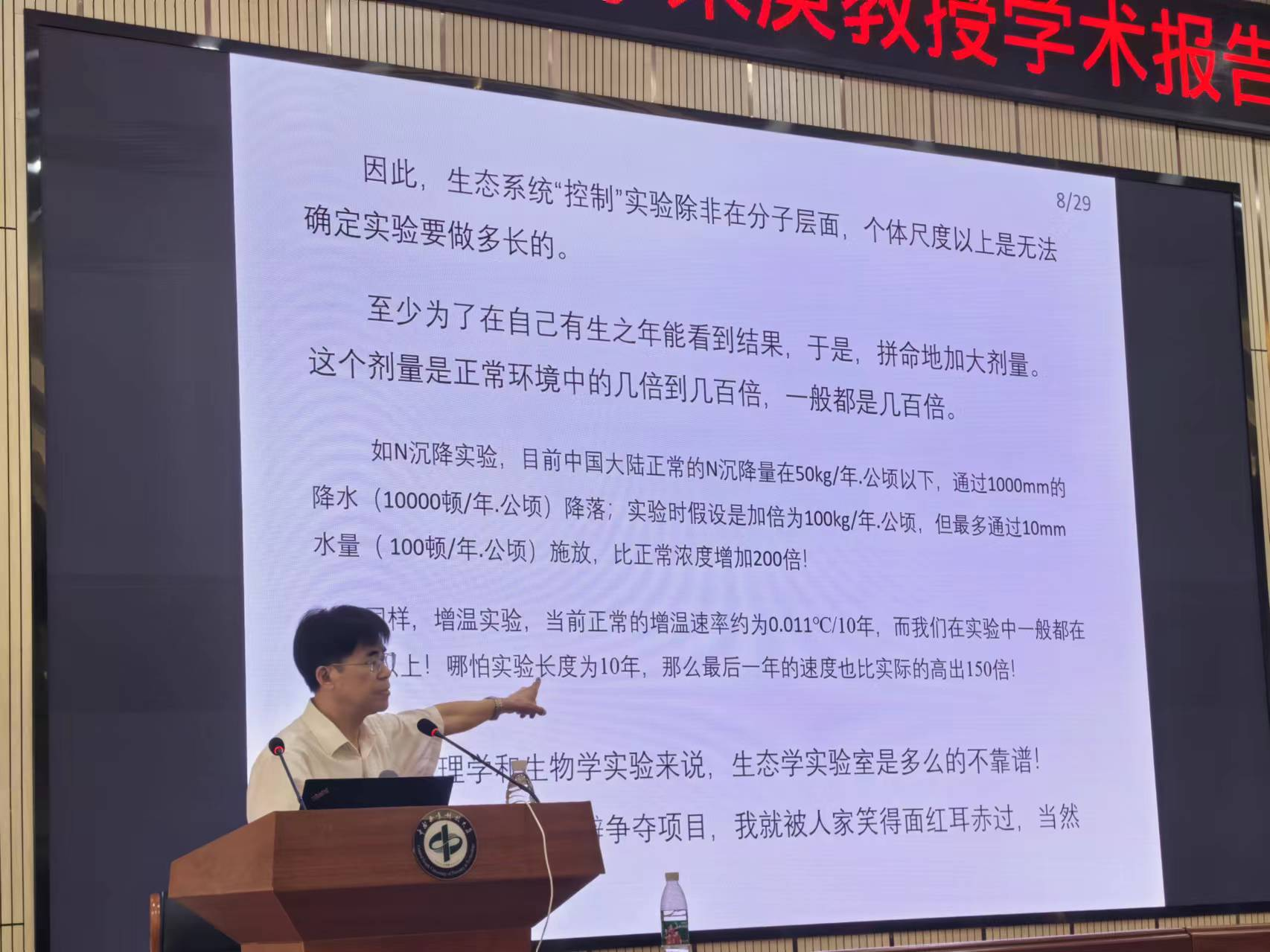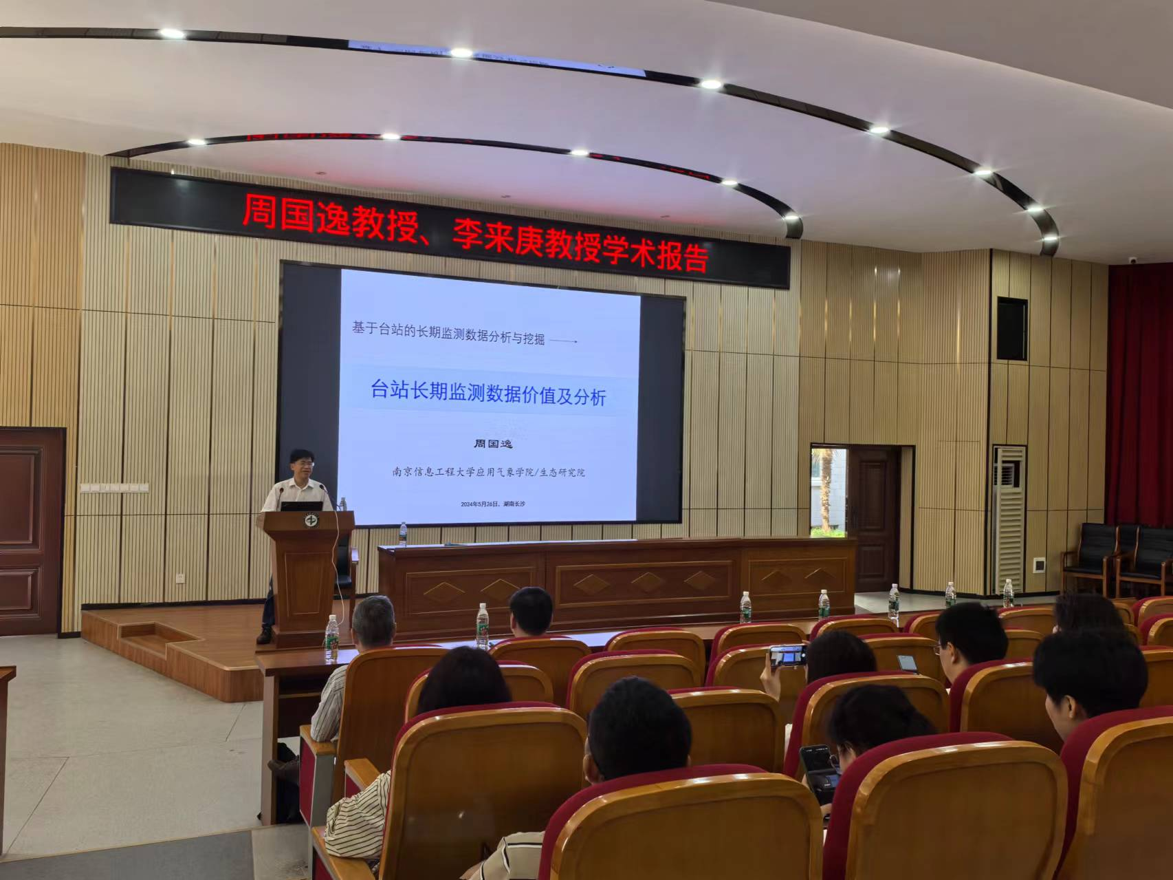 5月26日上午,南京信息工程大学应用气象学院周国逸教授应邀来到我校生命与环境科学学院,为师生做了题为"基于台站的长期监测数据分析与挖掘——台站长期监测数据价值及分析"的学术报告。报告会由生命与环境科学学院院长项文化教授主持,学院师生近百人参加了此次报告会。