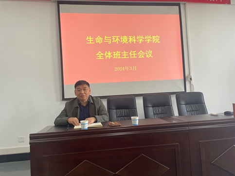 3月26日,生命与环境科学学院在躬行楼1211会议室召开全体班主任工作会议。学院院长项文化、全体班主任以及各年级辅导员参加会议,本次会议由项文化主持召开。
